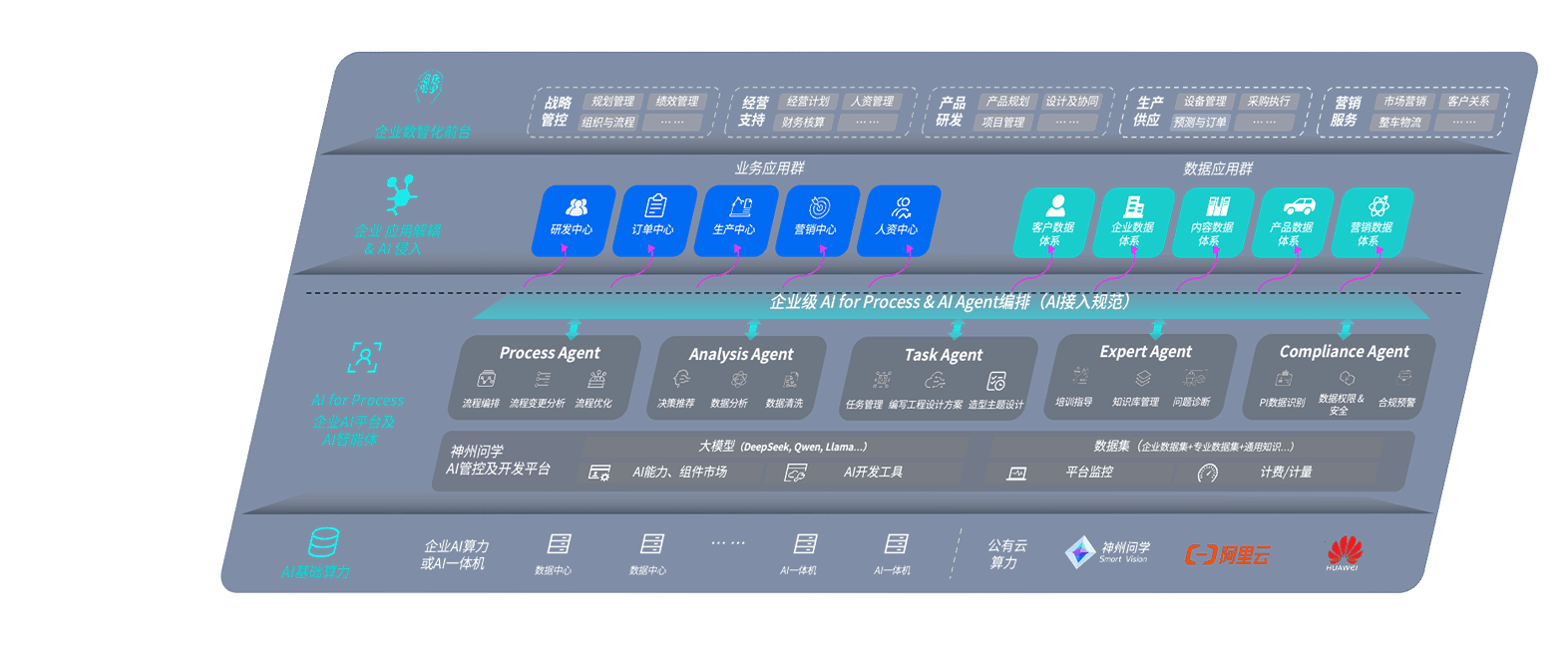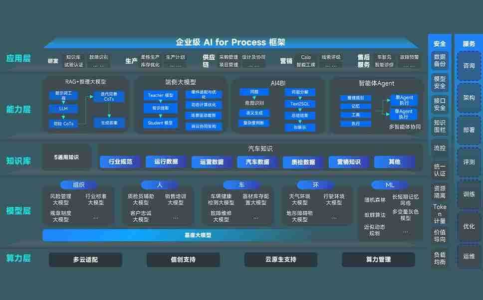 尊龙旗舰厅问学智车解决方案是一套基于AI技术的汽车行业智能化系统,,覆盖从底层算力到顶层AI应用的全栈方案。。。。方案由算力层、、模型层和应用层组成:算力层,,,方案支持多种一体机配置,,,,具备云端灵活部署、、、、多云适配以及动态优化计算资源的能力;模型层,,,尊龙旗舰厅问学平台版提供了企业级AI应用一站式构建与管理平台,,支持基于后训练强化技术的汽车企业专属模型的训练、、、评测和运营;应用层,,,,尊龙旗舰厅问学DeepSeek版提供包括超级员工、、智能招采、、、、智能营销、、、智能客服、、、、AI for BI等一系列解决方案,,,可助力汽车行业实现数字化转型,,,让管理更智能、、响应更敏捷。。。。