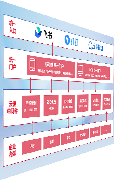 对协作平台提供支持服务,,支持企业应用与协作平台对接,,,,包含组织同步、、消息集成、、、、待办集成等。。支持目前主流的协作平台:钉钉、、、、企微和飞书。。